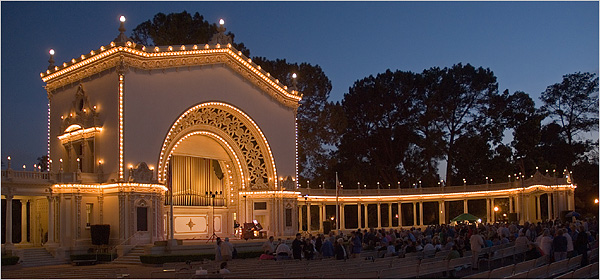 TimesDr. Williams at the console of the Spreckels Organ. But playing the organ in sunny Southern California, where she became the civic organist of San Diego in 2001, has often been a surprisingly chilling experience: The organ she plays here is one of the few in the world that stand out in the open. “The wind can blow your hair back,” she said. “It’s the coldest I’ve ever played.” Kneading a beanbag that she had heated in a microwave, she was warming her fingers recently for one of her regular Sunday afternoon concerts on the instrument, the Spreckels Organ. Its 4,518 pipes speak from a “pavilion” in Balboa Park, which opened on New Year’s Eve in 1914, for an exposition celebrating the completion of the Panama Canal. San Diegans boast that it is the largest outdoor pipe organ in the country, though the Chautauqua Institution in upstate New York has a larger one in an open-air auditorium — but it has a roof. The pavilion here shelters the pipes from the elements, but the audience and the organist sit under the sky. (The console fits behind a 10-ton iron curtain that comes down between concerts.) Donated by John D. and Adolph B. Spreckels, heirs to a sugar fortune, the organ is owned by the city of San Diego, one of the few still maintaining an old American tradition of having an organist on the city payroll. San Diego will pay about $68,000 this year in one way or another for music in the pavilion, including half the civic organist’s salary and a contribution to the Spreckels Organ Society, which pays the rest and organizes summer evening concerts under Dr. Williams’s direction — all part of a unique city treasure, according to George Biaggi, the deputy press secretary to Mayor Jerry Sanders. “We’re strong supporters,” Mr. Biaggi said, despite a long-running city budget crisis. Dr. Williams, who earned her doctorate at the Manhattan School of Music in 2001, works the organ’s four keyboards and pedal board out in the elements, often in a chill Pacific breeze. The organ can be stentorian and can more than hold its own, even with the jet planes roaring into the airport down the hill. Adults, children, even dogs, attracted by the sound, drift in and sit in the sun — or wrap up against the ocean breeze — and listen. “They’ll probably hear this in New York City,” Dr. Williams told them the other day before tearing into a toccata, tossing her long black hair and showing a bit of leg as she jumped up onto the organ bench. Lyle W. Blackinton, the organ curator, keeps the pipes in tune, the vagaries of weather permitting, and helps Dr. Williams keep her music sheets from blowing away. By the time she finished a program that also included a work by the contemporary Welsh composer Karl Jenkins, a transcription of Duke Ellington’s “Solitude” and the early-20th-century French organist Louis Vierne’s “Carillon de Westminster,” on the theme of Big Ben’s chimes, a couple of hundred people were listening. The special summer concerts draw up to 4,200. “Even when it’s a rainy Sunday, people will gather onstage,” she said. She starts every concert with an arrangement of “America the Beautiful” and finishes with “The Star-Spangled Banner,” ending with a crash of cymbals (real ones that are part of the instrument; the organ also has a stop that imitates a harp). “Sunday afternoons have to be, in a way, entertaining,” she said, “but there’s nothing wrong with that. The organ has a future, if people play what audiences want to listen to.” Among the pieces she has played are “How Much Is That Doggie in the Window?” and “Mad Dogs and Englishmen,” at a concert in February called “Bark in the Park,” a benefit for the San Diego Humane Society. It was a jazz electronic organ that belonged to an aunt in England, near her parents’ home southwest of London, near Aldershot, that got her hooked on the instrument. “I had started piano at age 5, but then when my aunt bought the organ, that was it,” she said. “I grew up playing jazz organ, and then studied organ at the Royal Academy of Music.” She saw an advertisement for the civic organist post while she was finishing her doctorate in New York. Now she has a Mustang with “CIV ORG” plates, and she and her fiancé, Kerry Bell, a videographer, plan to drive up to the pavilion on Oct. 20 to be married there, with some of her predecessors doing the honors. Many cities in America had municipal organists 100 or 75 years ago, before phonographs, stereos, CD players or iPods; they hired them to play not only organ music but also transcriptions of symphonic and band music, on pipe organs built to imitate the sounds of orchestras, and keep the citizenry entertained. Tens of thousands of people flocked to hear municipal organs in places from San Francisco to San Diego, and from Chattanooga, Tenn., to Portland, Me., all with instruments by the Austin Organ Company of Hartford, which operates today as Austin Organs Inc. Outdoor organ playing has some unique challenges. The worst Dr. Williams remembers facing was a huge beetle that landed on the pedal board next to her foot one evening — “on the second page of a concerto,” she said. A fellow musician came to the rescue and brushed the beast away. Correction: May 1, 2007 A picture caption in The Arts on Saturday with an article about Carol Williams, the civic organist for San Diego, carried an erroneous credit. The photograph, of the organ she plays and the pavilion that shelters it, was by Robert Harrington, not Donald MacKenzie. Back to Plaudits page |